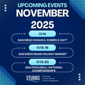 From coastal races to culinary showcases, November in San Diego is a celebration of community, creativity, and connection. Make the most of your visit by booking a stay with Stubbs Vacation Rentals.