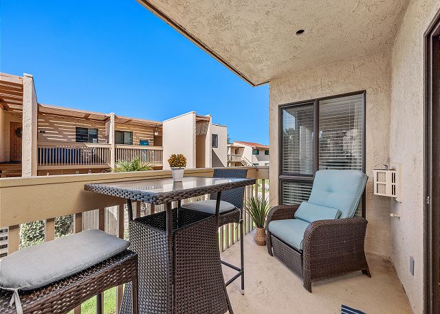 Located in a charming oceanfront community atop the bluffs of Solana Beach, this thoughtfully upgraded two-bedroom condo offers a spacious layout and all the essentials for a relaxing San Diego getaway.
