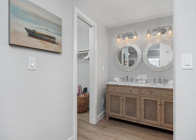 • Primary suite includes a king-size bed, loveseat, walk-in closet, and an en-suite bathroom